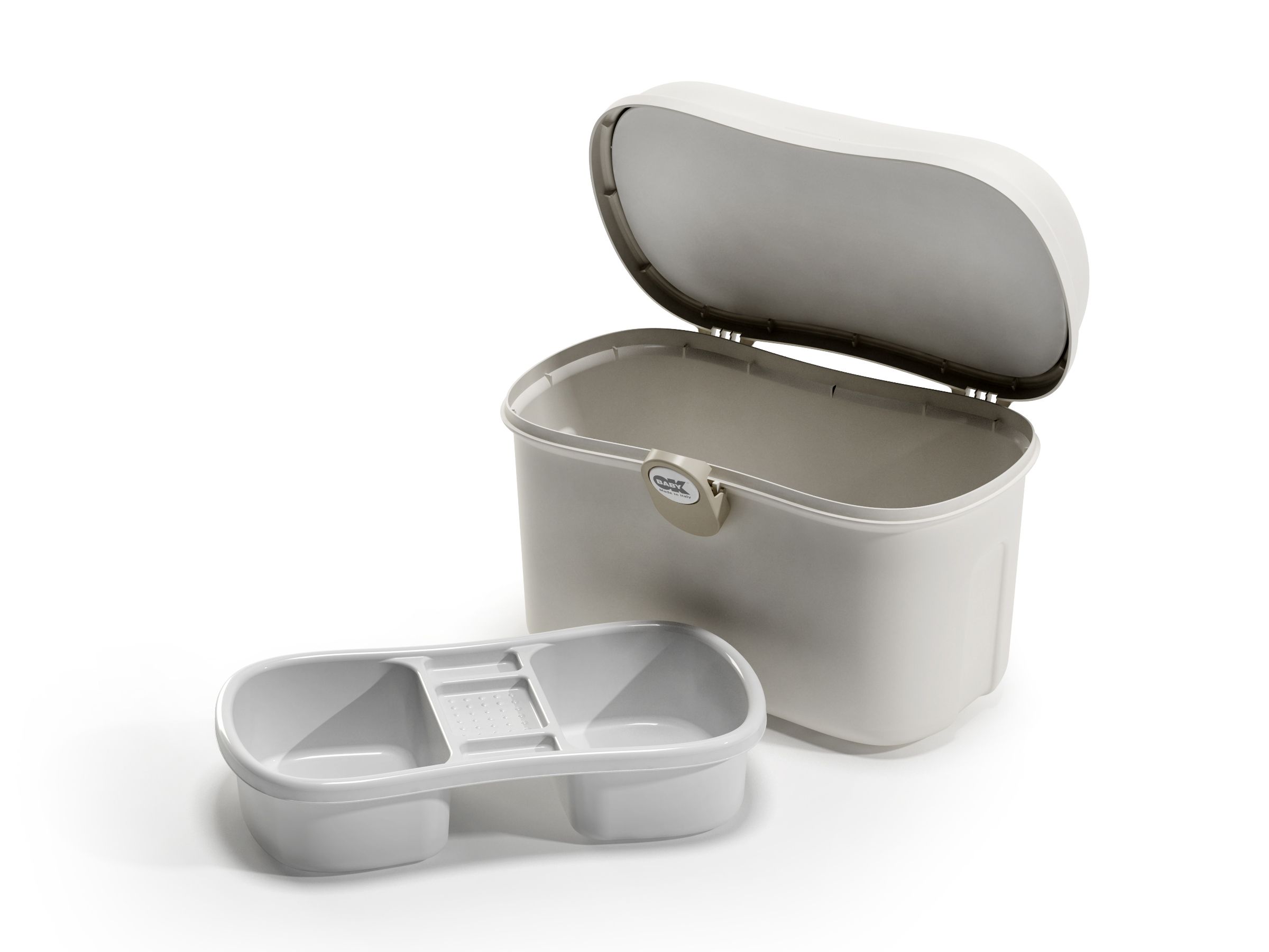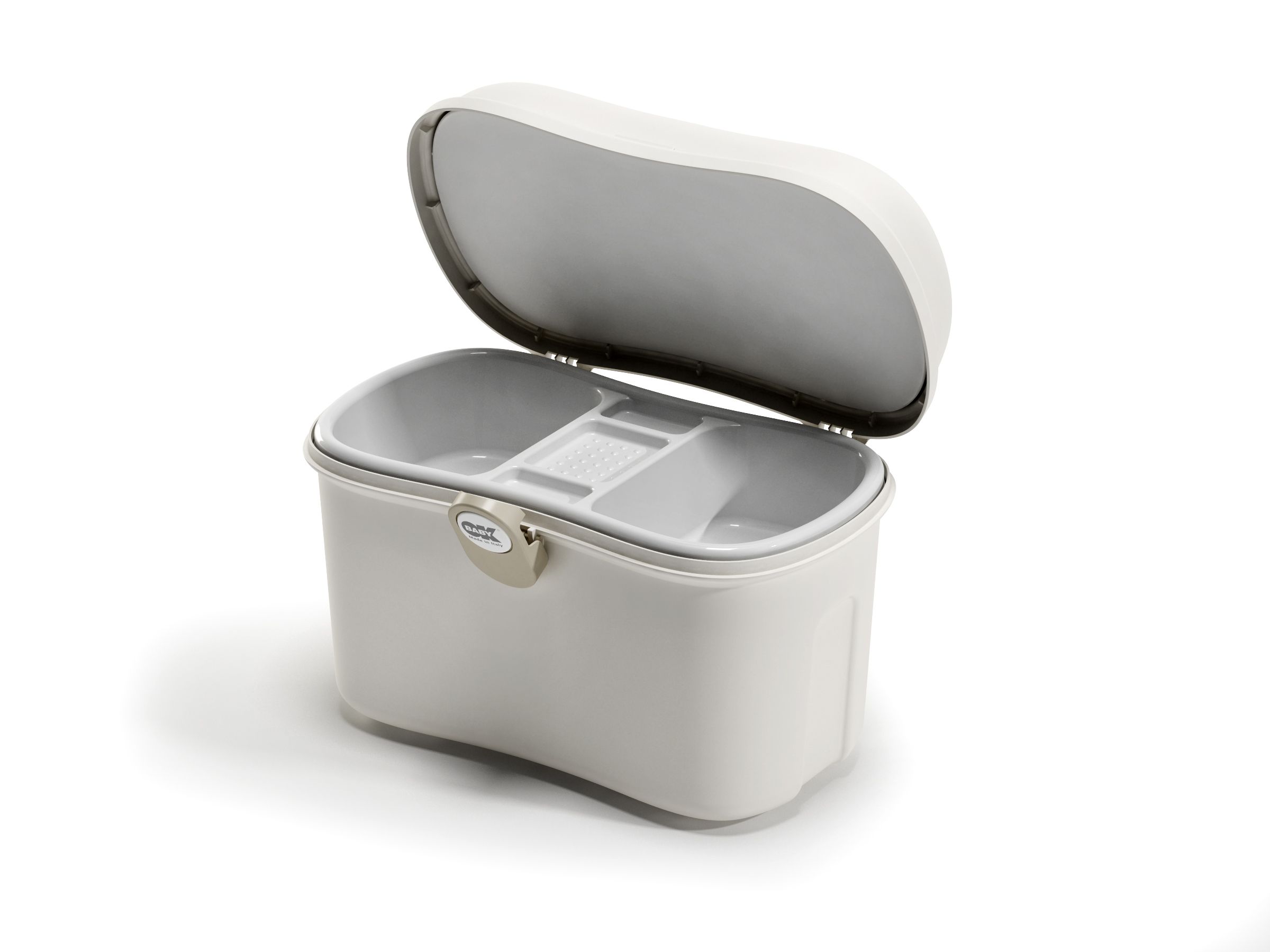 The simple yet durable design has a compartment inside the lid plus a number of handy expandable dividers in the base that help secure bottles of lotions or shampoo in an upright position minimising spills. This sleek baby box has plenty of space for nappies, wipes, cotton wool and other baby essentials, perfect for keeping everything neatly together and at hand ready for nappy changing and bath time.