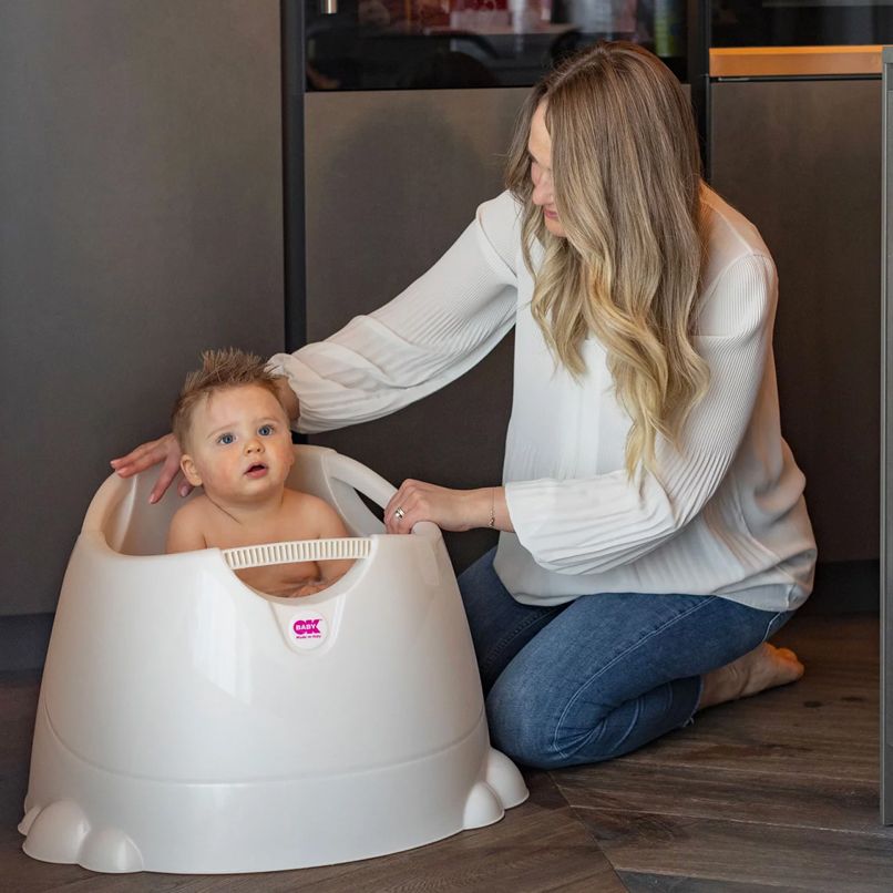 Ideal for homes without a bath or children who dislike adult baths, Opla provides a supportive seat and keeps bath toys within easy reach. Provided with a quick drainage plug, integral safe water level indicator and a water thermometer.